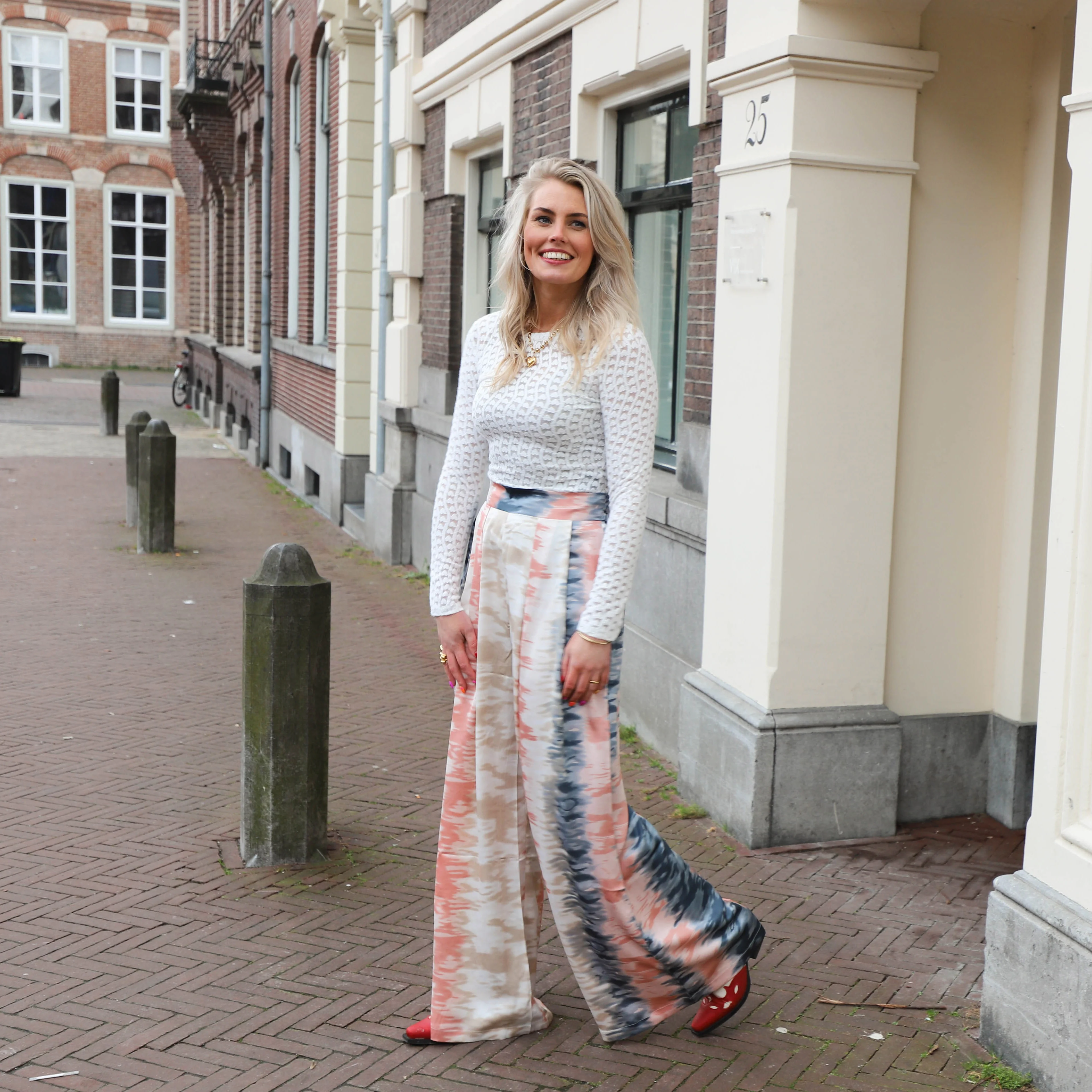 De Ella broek is een prachtige broek met wijde pijpen. De breedte van de broek en de kleuren van de tie-dye print zorgen voor een classy look. Combineer met de Tommie top voor de complete look.